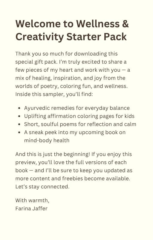 This Free Sample Book is a delightful collection of sneak peeks from 5 Unique Titles, all created to uplift your Mind, Body, and Creativity.